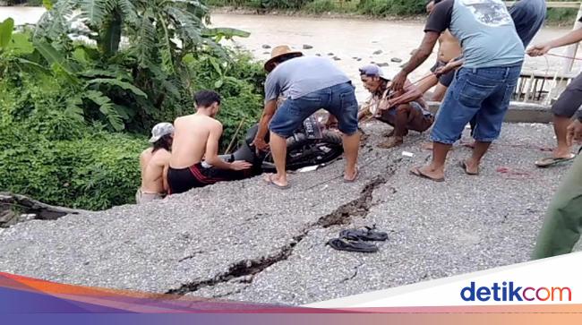 "Motor yang NMax belum sempat terseret, kalau yang CBR terbawa sampai tengah-tengah menggantung di besi behel. Kalau saya lihat di salah satu video juga ada, di tebingan itu besi behelnya hanya ada di atas sementara di bagian bawah ke pondasi sepertinya tidak ada padahal itu kan lokasi urugan," lanjutnya.