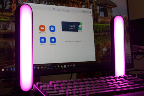 それはともかく、Web会議用の照明としては、Hue Play×2個の実用性は申し分なく、映像・音声と同期させて気心の知れたメンバーとミーティングするのは、気分がアガって(自分だけ)すごく楽しい。あるいはライブ配信が趣味の人は、先ほどの最後の例のように背景照明の色を変え、独特の雰囲気をかもし出すような使い方もアリだ。