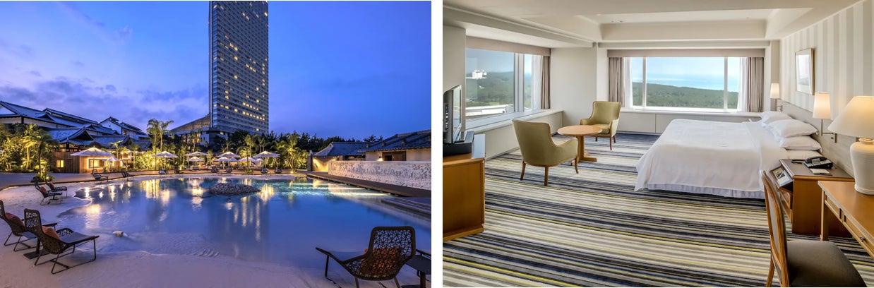広大なリゾートエリアの中心に位置するシェラトン・グランデ・オーシャンリゾートは、地上154m、全客室東向きのオーシャンビュー。