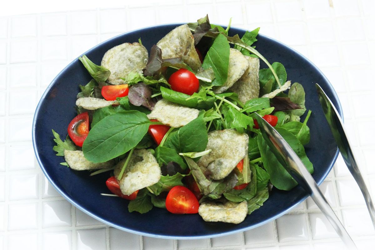 グリーンサラダに「ハンターズ キャビアフレーバーポテトチップス」