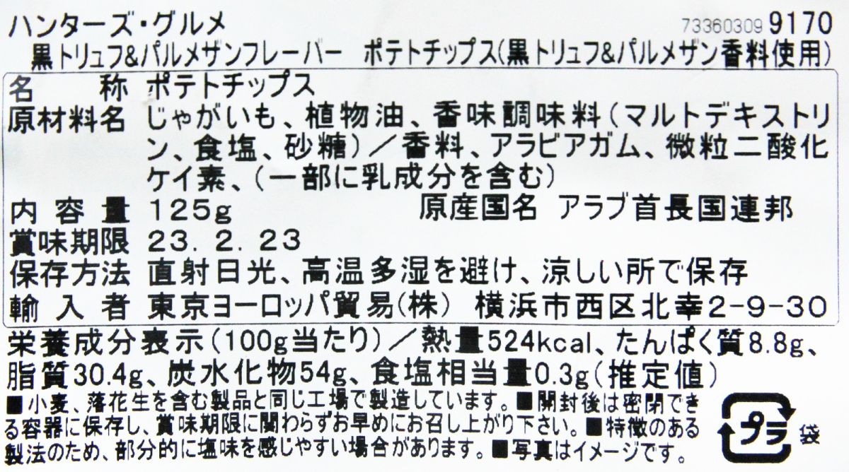 「ハンターズ 黒トリュフ&パルメザンチーズ」125g 486円。