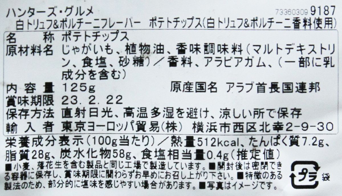 「ハンターズ 白トリュフ&ポルチーニフレーバー ポテトチップス」125g 530円。
