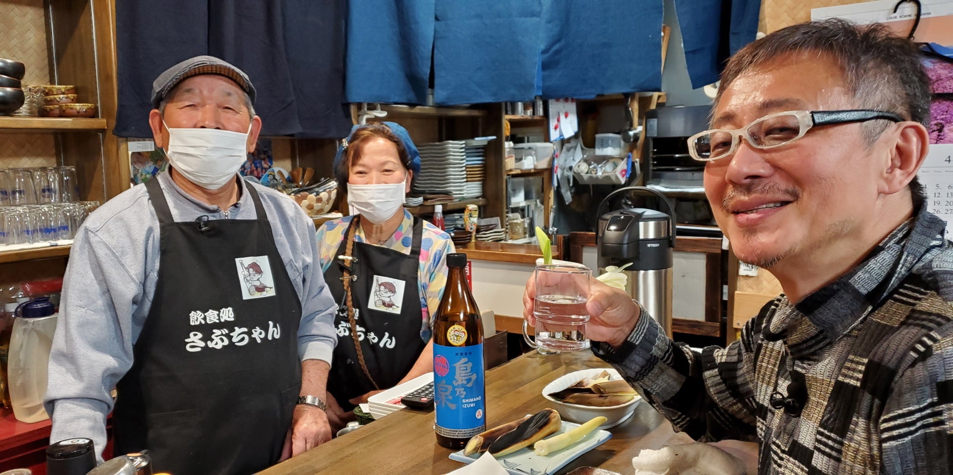 立ち寄った地産地消推進店の一条をはじめ、飲食処さぶちゃんや焼酎BAR種子島は、3軒ともご夫婦で営んでます。地魚は旨く、郷土料理ももちろん絶品。極上の夜が、あっという間に更けていきます。