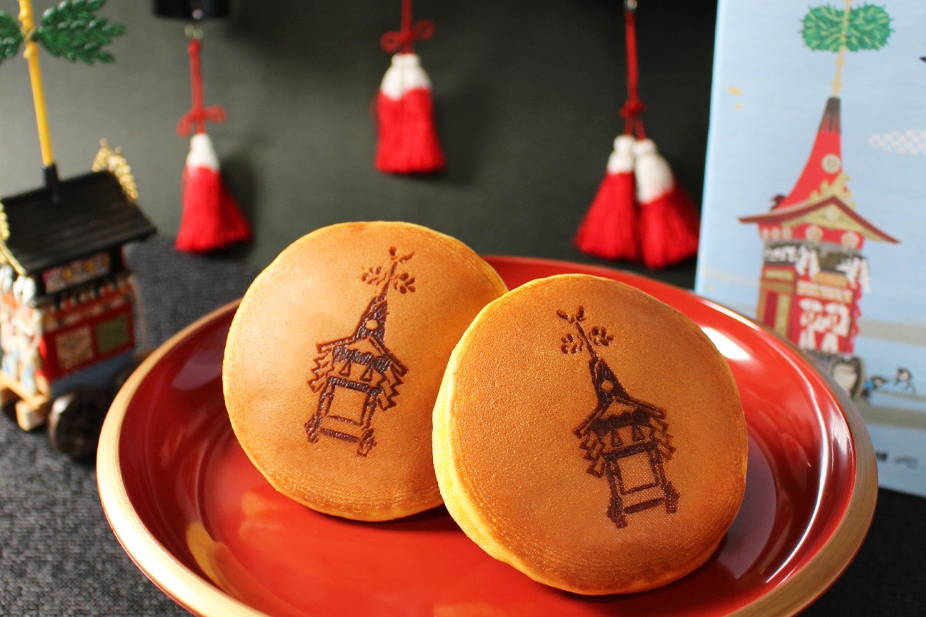「生八ッ橋入り井筒の三笠」に、祇園祭を彩る鉾の焼印をあしらいました。